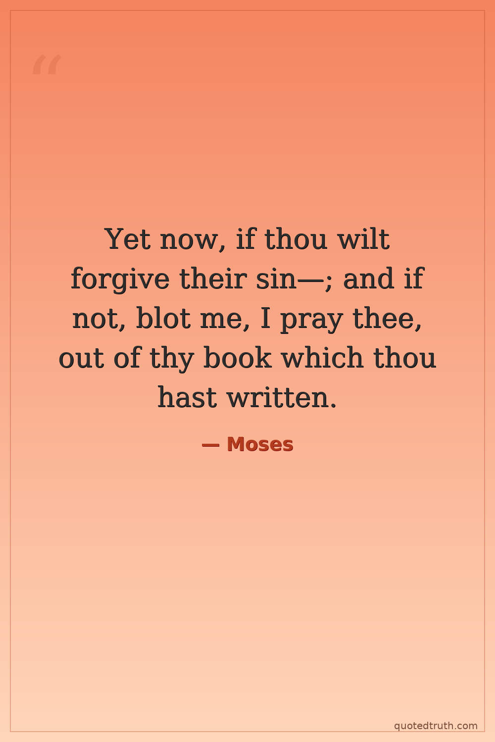 Yet now, if thou wilt forgive their sin—; and if not, blot me, I pray thee, out of thy book which thou hast written.
