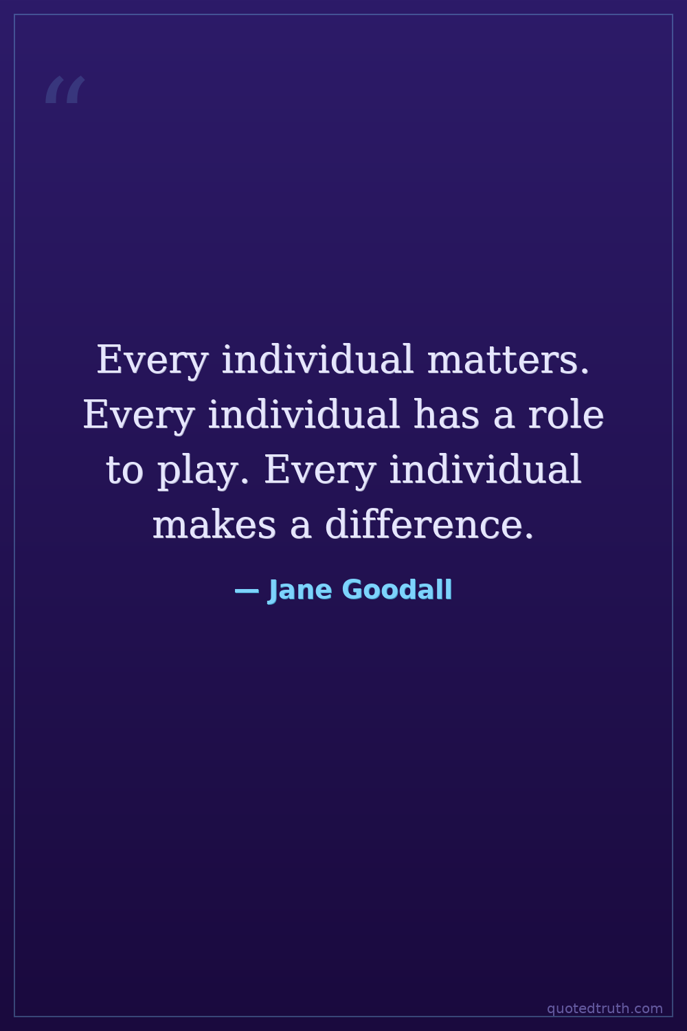 Every individual matters. Every individual has a role to play. Every individual makes a difference.