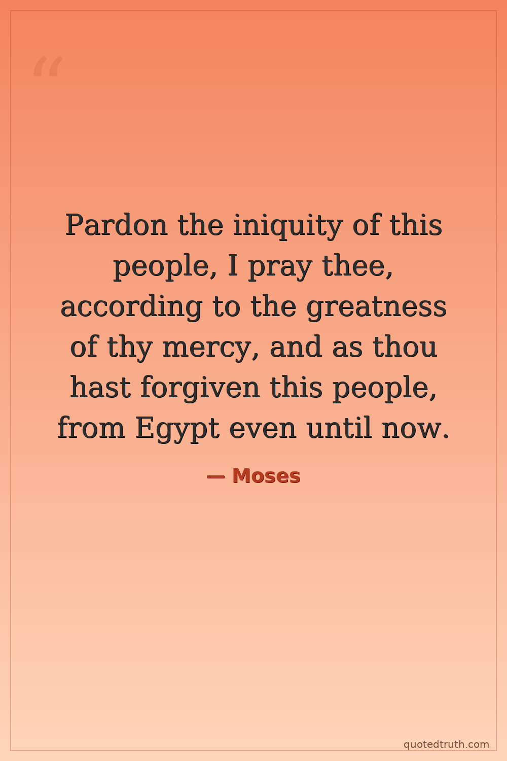 Pardon the iniquity of this people, I pray thee, according to the greatness of thy mercy, and as thou hast forgiven this people, from Egypt even until now.
