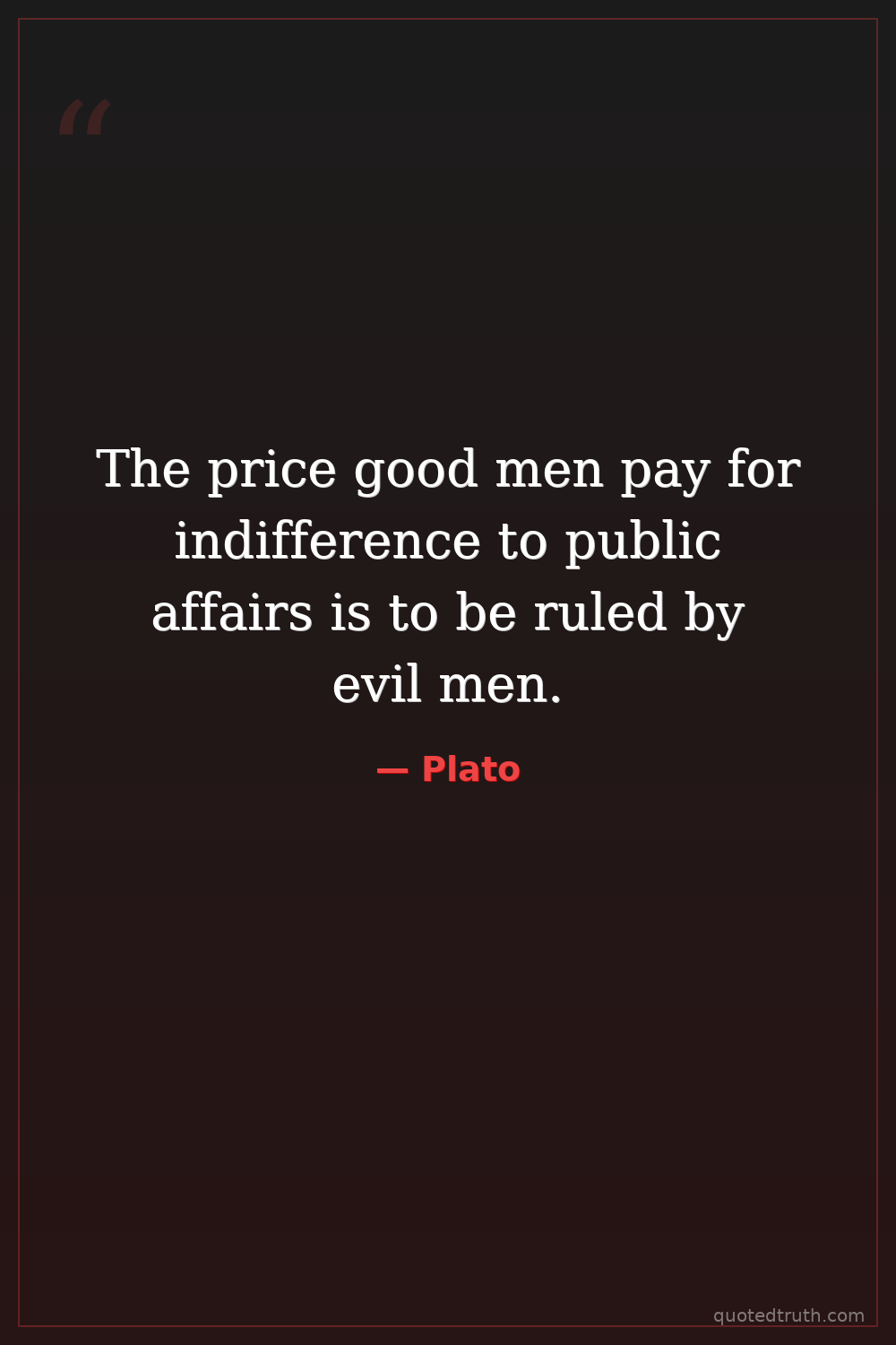 The price good men pay for indifference to public affairs is to be ruled by evil men.