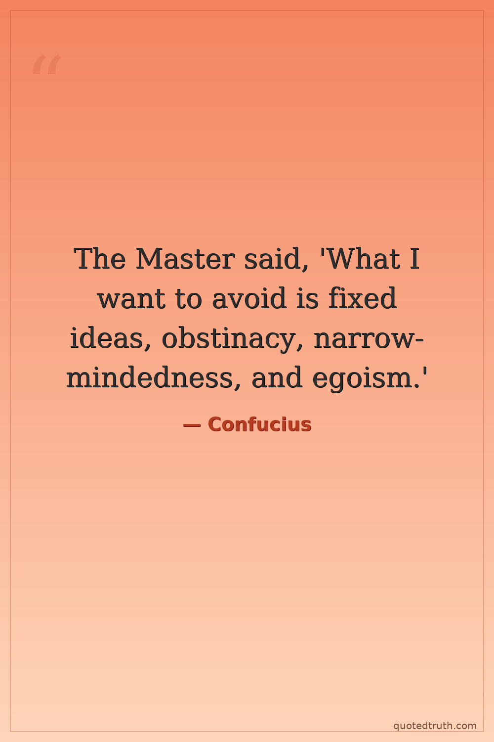 The Master said, 'What I want to avoid is fixed ideas, obstinacy, narrow-mindedness, and egoism.'