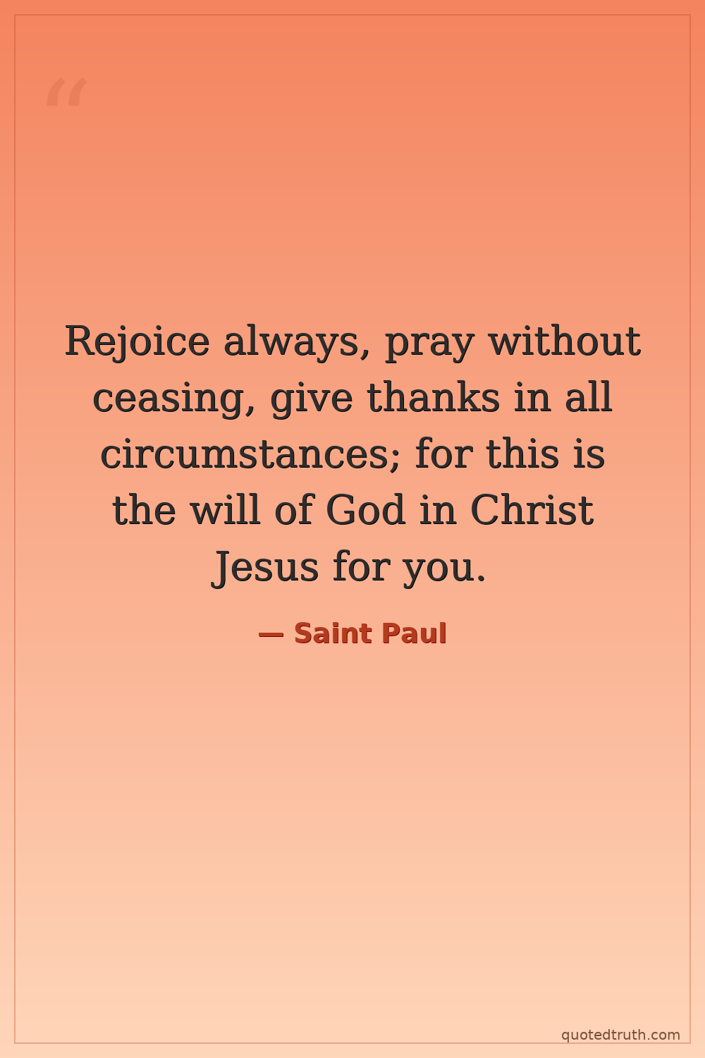 Rejoice always, pray without ceasing, give thanks in all circumstances; for this is the will of God in Christ Jesus for you.