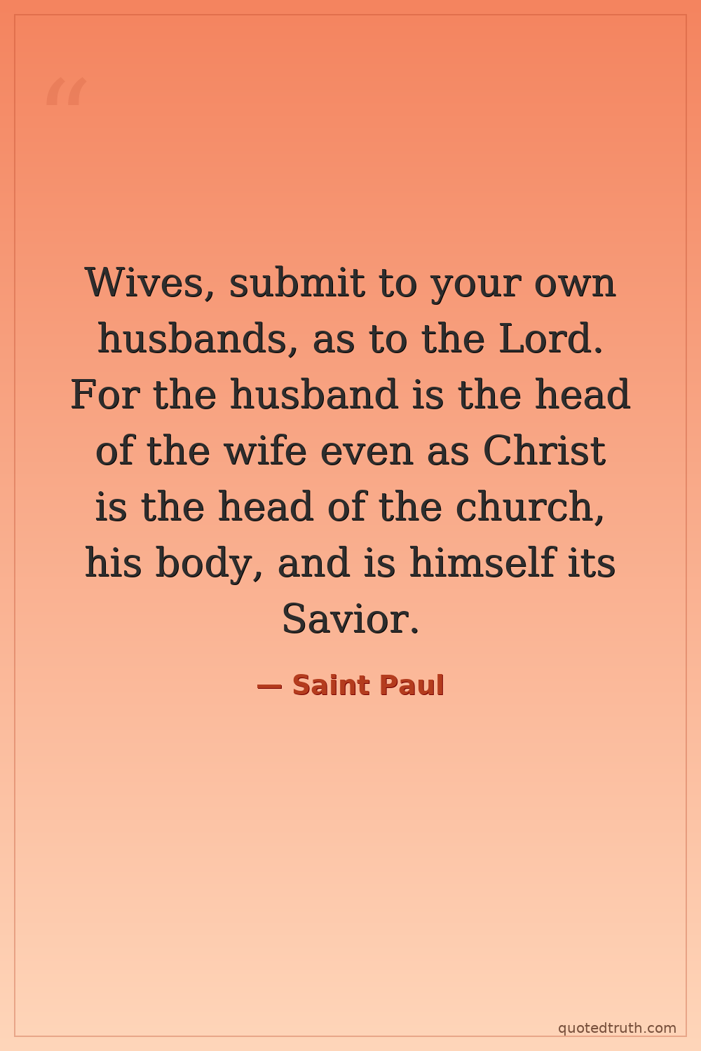 Wives, submit to your own husbands, as to the Lord. For the husband is the head of the wife even as Christ is the head of the church, his body, and is himself its Savior.