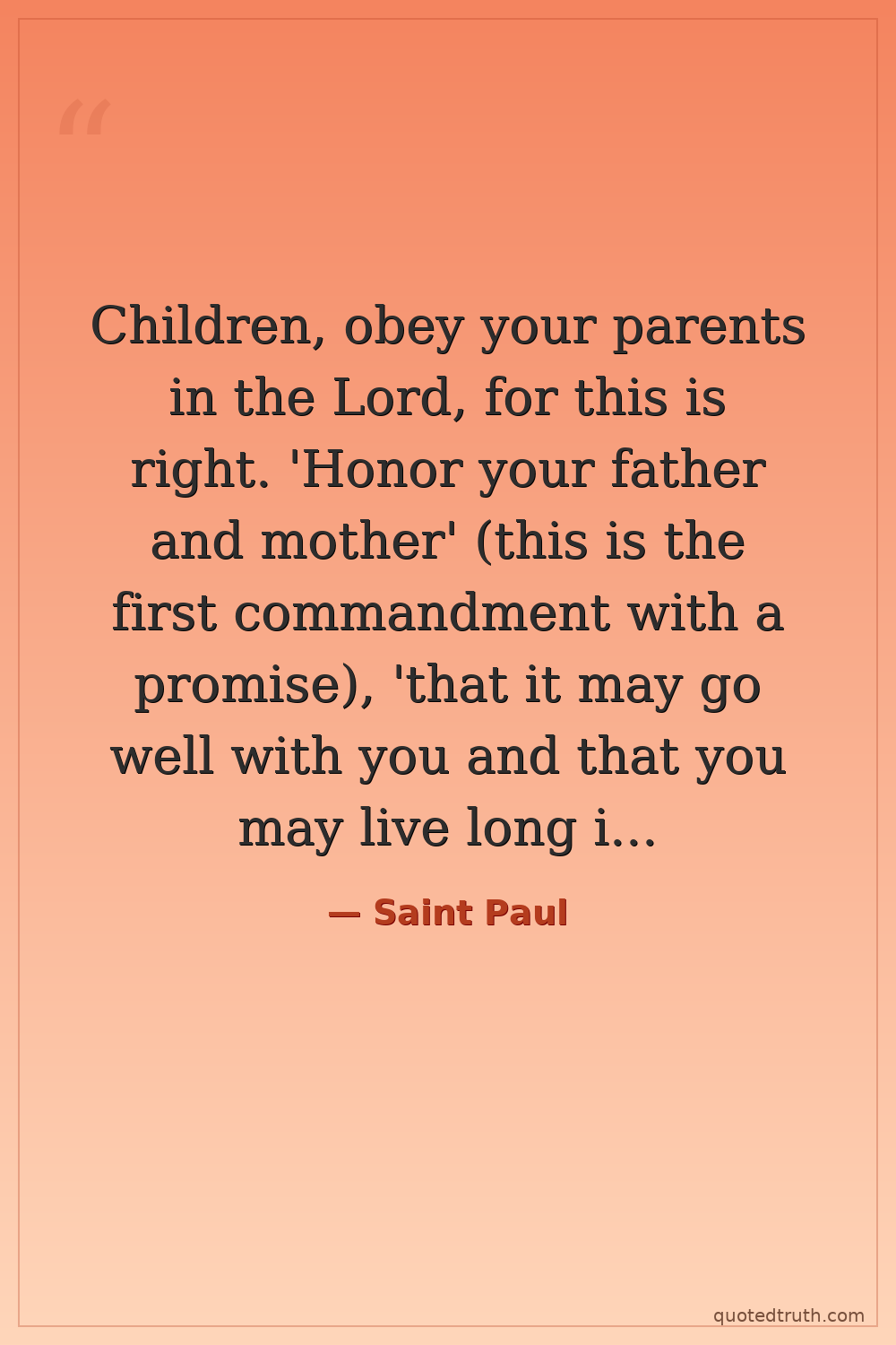 Children, obey your parents in the Lord, for this is right. 'Honor your father and mother' (this is the first commandment with a promise), 'that it may go well with you and that you may live long in the land.'