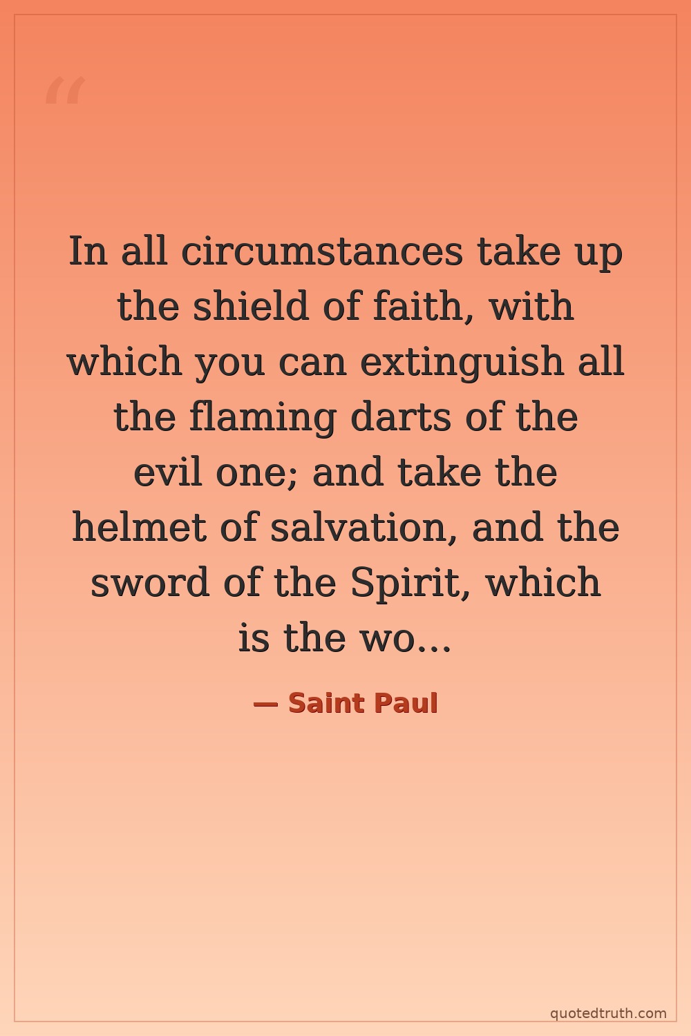 In all circumstances take up the shield of faith, with which you can extinguish all the flaming darts of the evil one; and take the helmet of salvation, and the sword of the Spirit, which is the word of God.