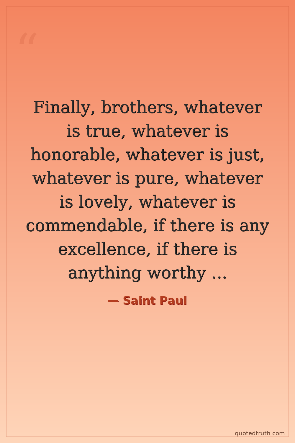 Finally, brothers, whatever is true, whatever is honorable, whatever is just, whatever is pure, whatever is lovely, whatever is commendable, if there is any excellence, if there is anything worthy of praise, think about these things.
