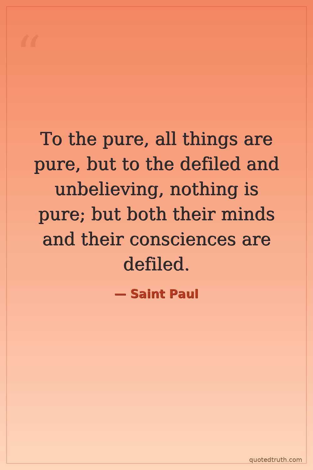 To the pure, all things are pure, but to the defiled and unbelieving, nothing is pure; but both their minds and their consciences are defiled.