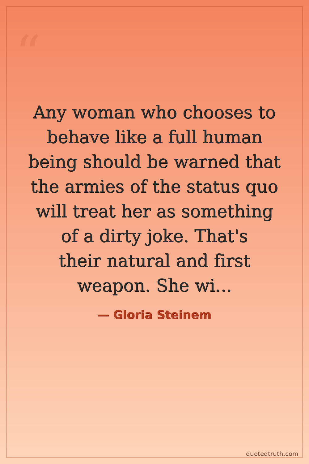 Any woman who chooses to behave like a full human being should be warned that the armies of the status quo will treat her as something of a dirty joke. That's their natural and first weapon. She will need her sisterhood.