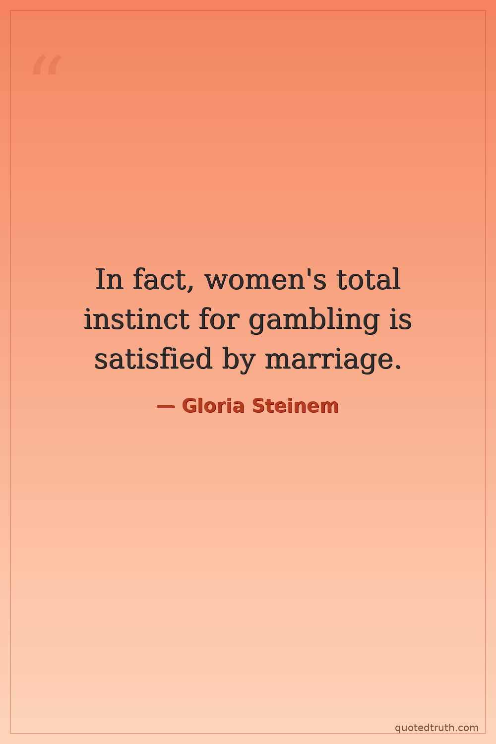 In fact, women's total instinct for gambling is satisfied by marriage.