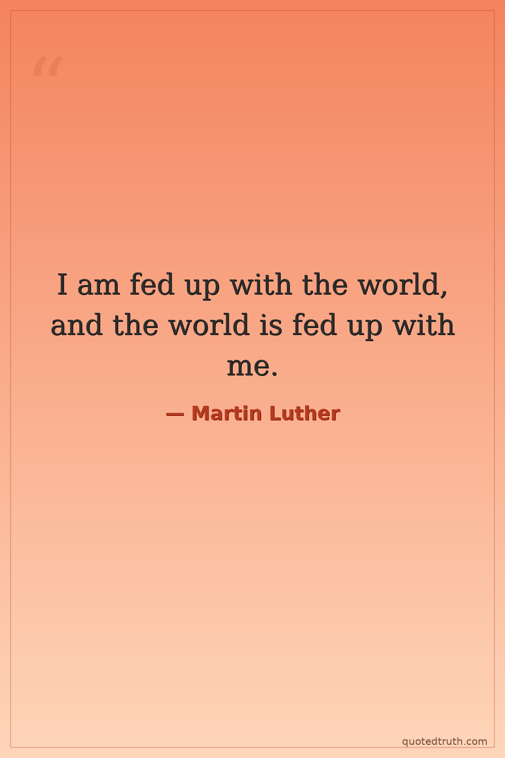 I am fed up with the world, and the world is fed up with me.