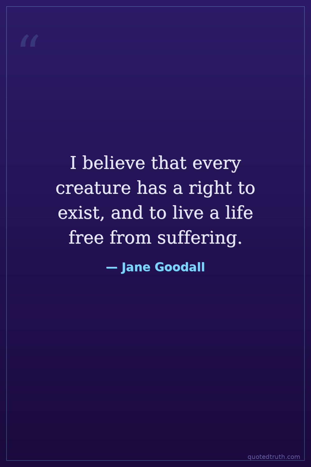 I believe that every creature has a right to exist, and to live a life free from suffering.