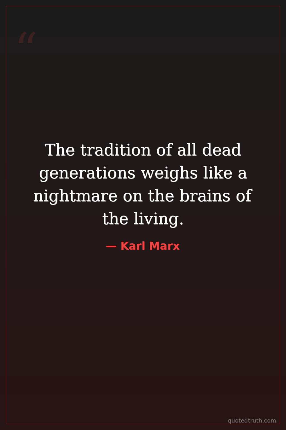 The tradition of all dead generations weighs like a nightmare on the brains of the living.