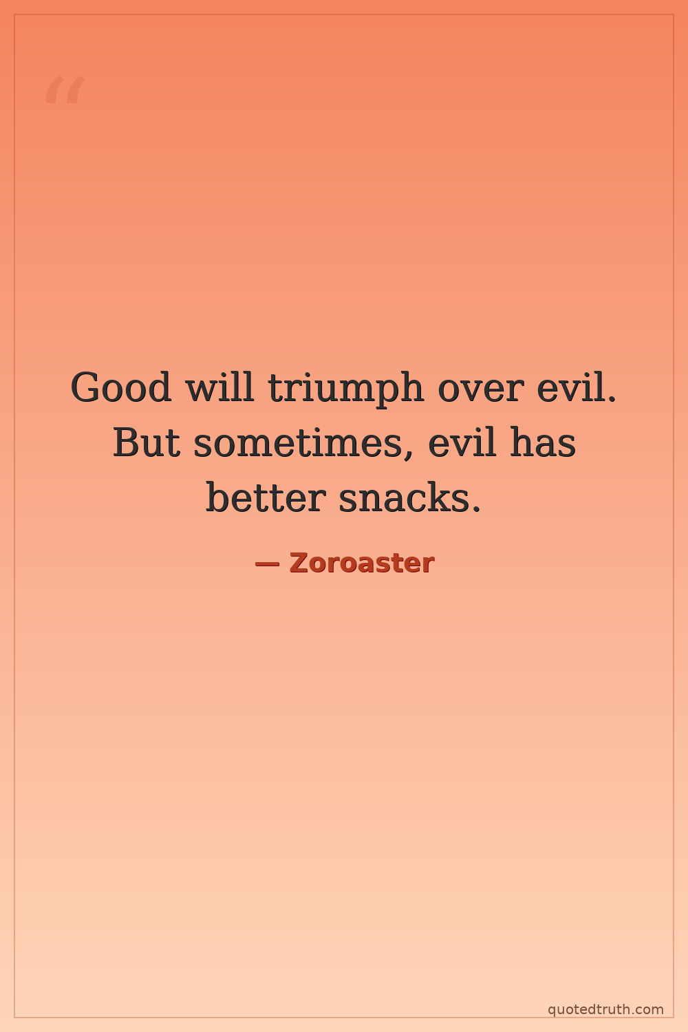 Good will triumph over evil. But sometimes, evil has better snacks.