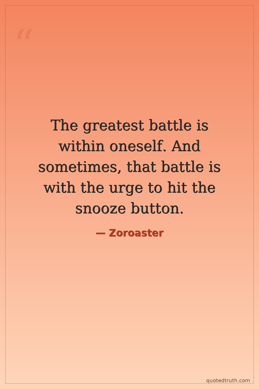The greatest battle is within oneself. And sometimes, that battle is with the urge to hit the snooze button.