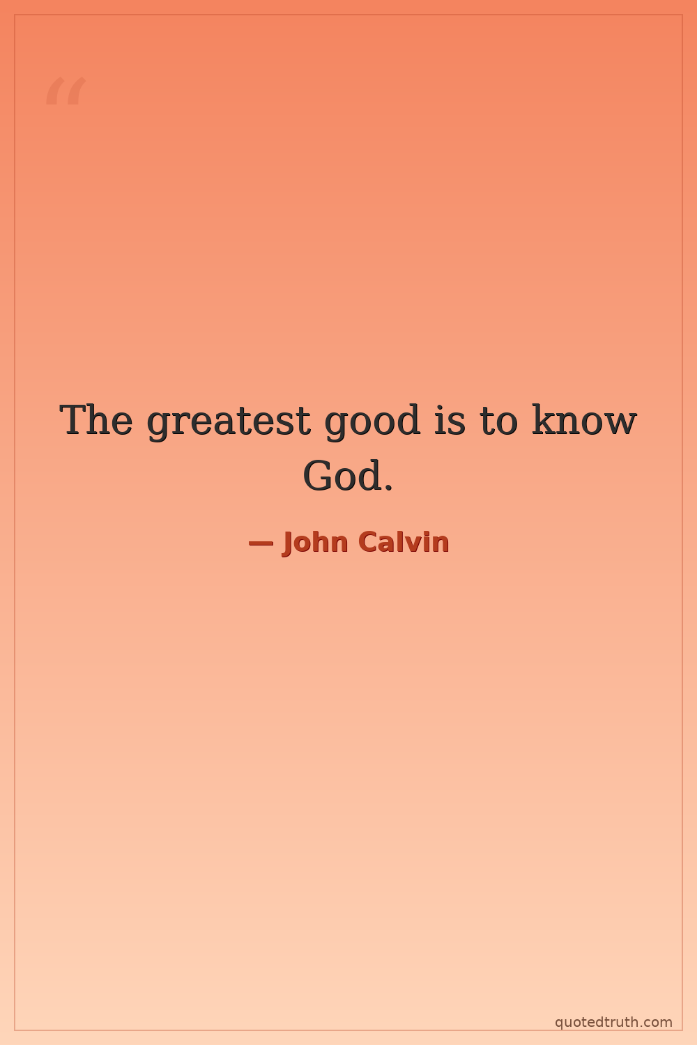 The greatest good is to know God.