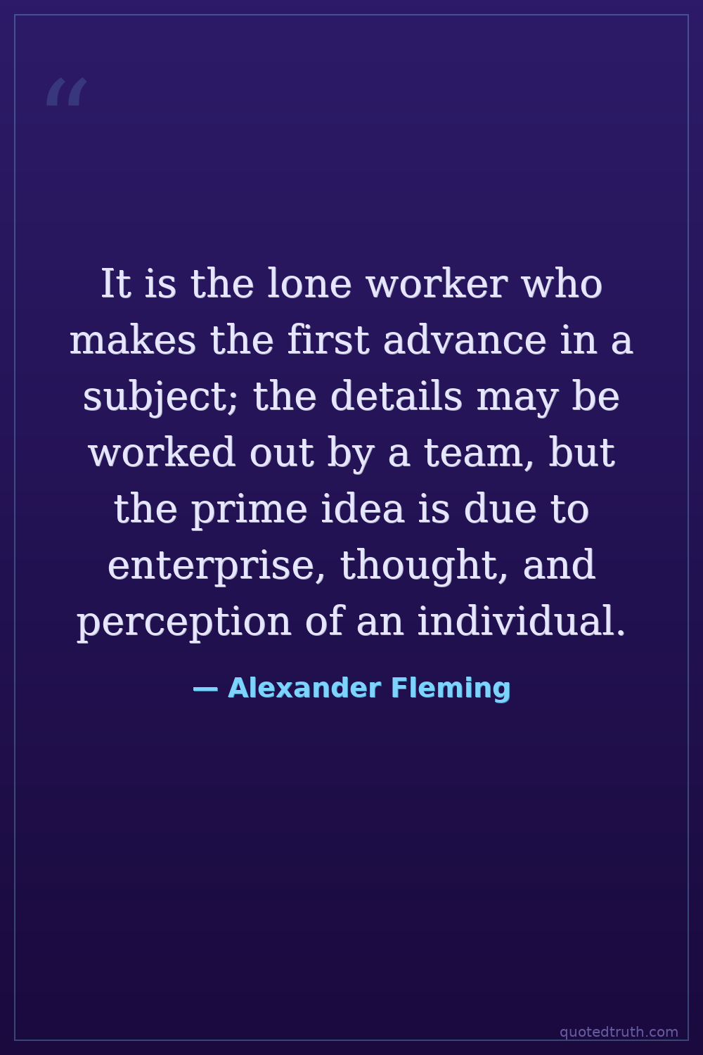 It is the lone worker who makes the first advance in a subject; the details may be worked out by a team, but the prime idea is due to enterprise, thought, and perception of an individual.