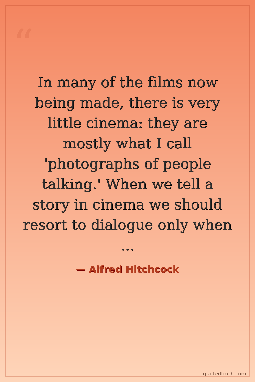In many of the films now being made, there is very little cinema: they are mostly what I call 'photographs of people talking.' When we tell a story in cinema we should resort to dialogue only when it's impossible to do otherwise.