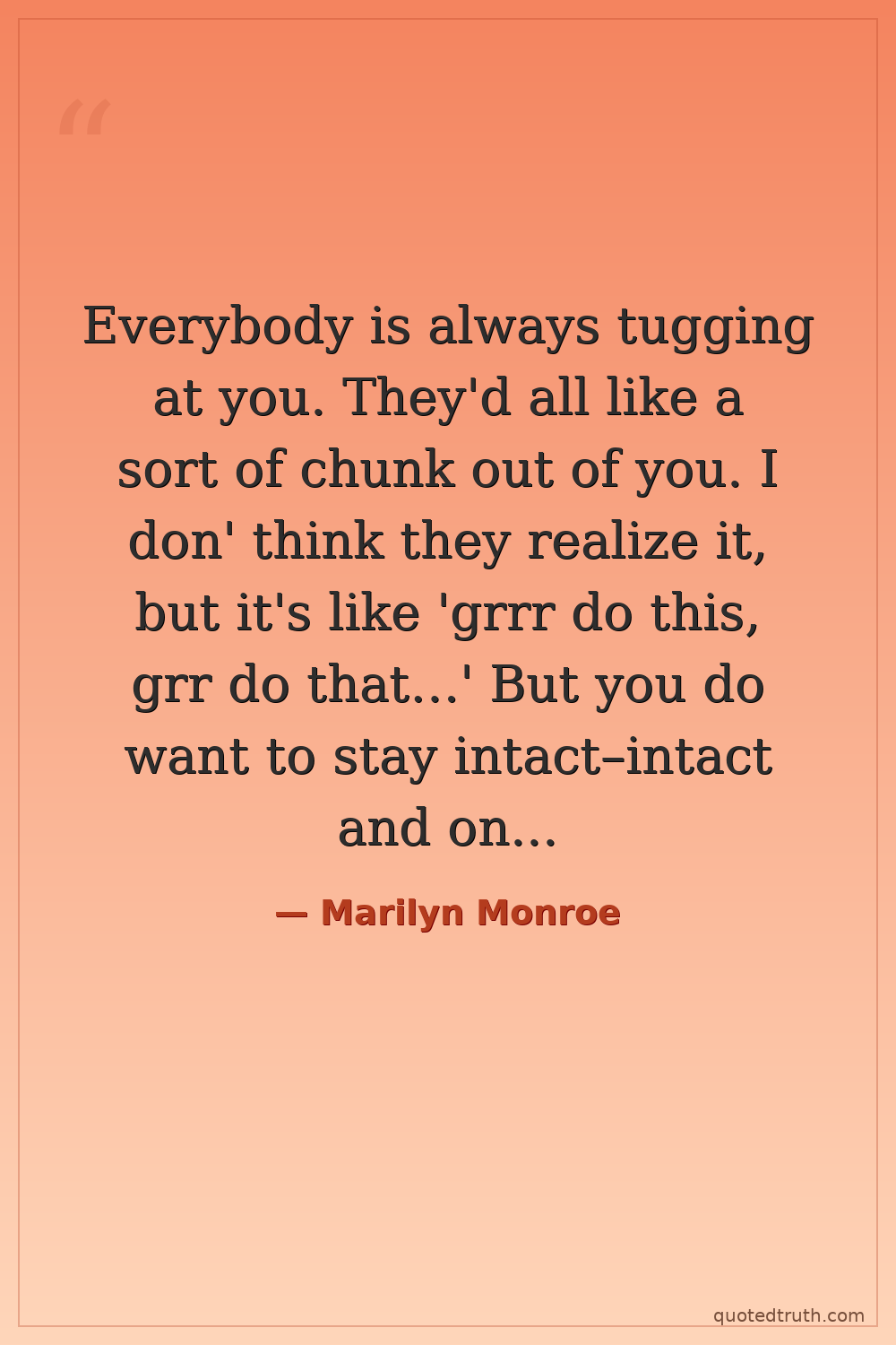 Everybody is always tugging at you. They'd all like a sort of chunk out of you. I don' think they realize it, but it's like 'grrr do this, grr do that…' But you do want to stay intact–intact and on two feet.