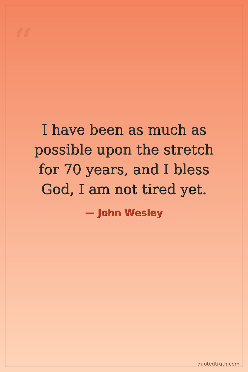 I have been as much as possible upon the stretch for 70 years, and I bless God, I am not tired yet.
