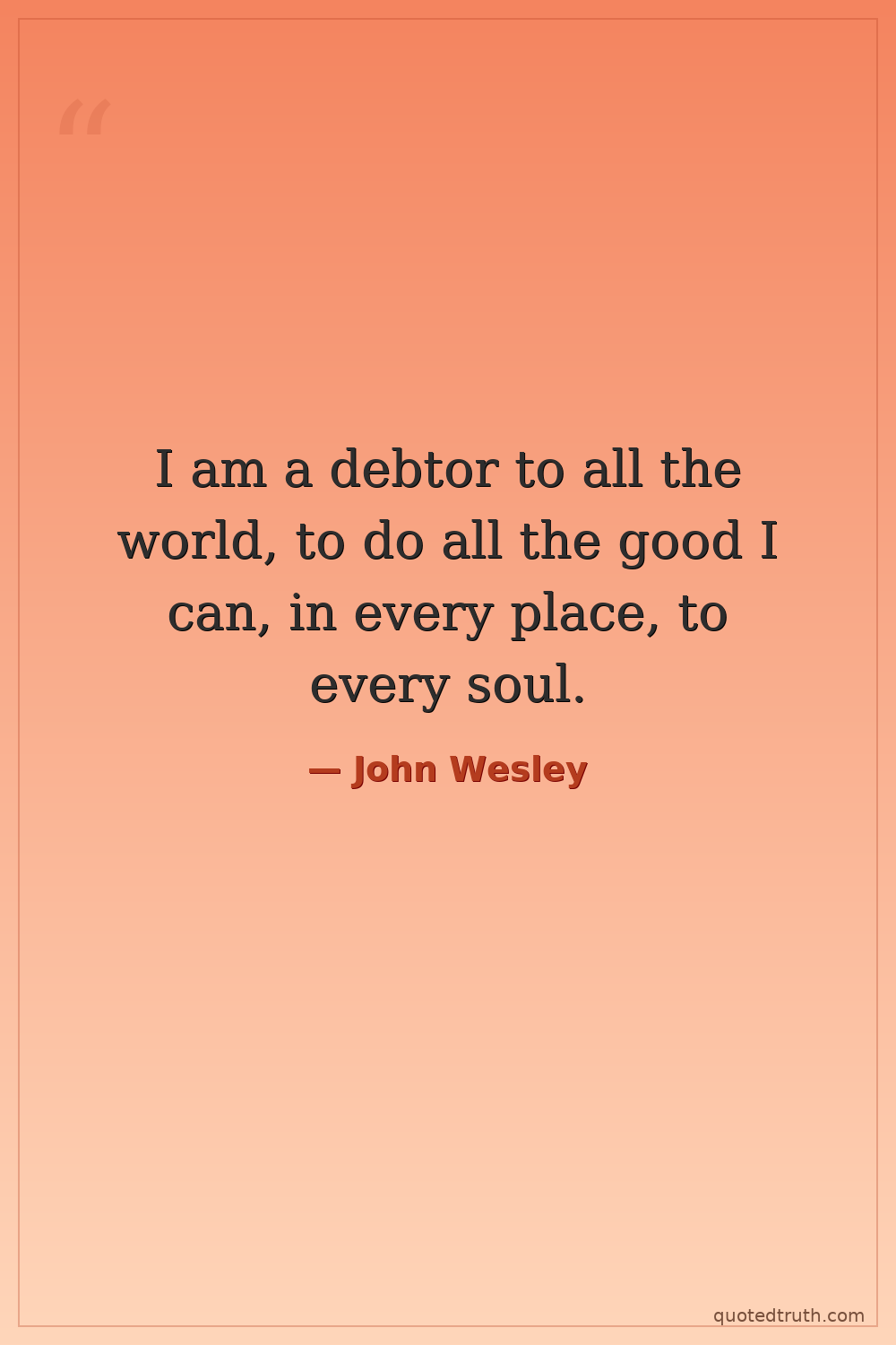I am a debtor to all the world, to do all the good I can, in every place, to every soul.