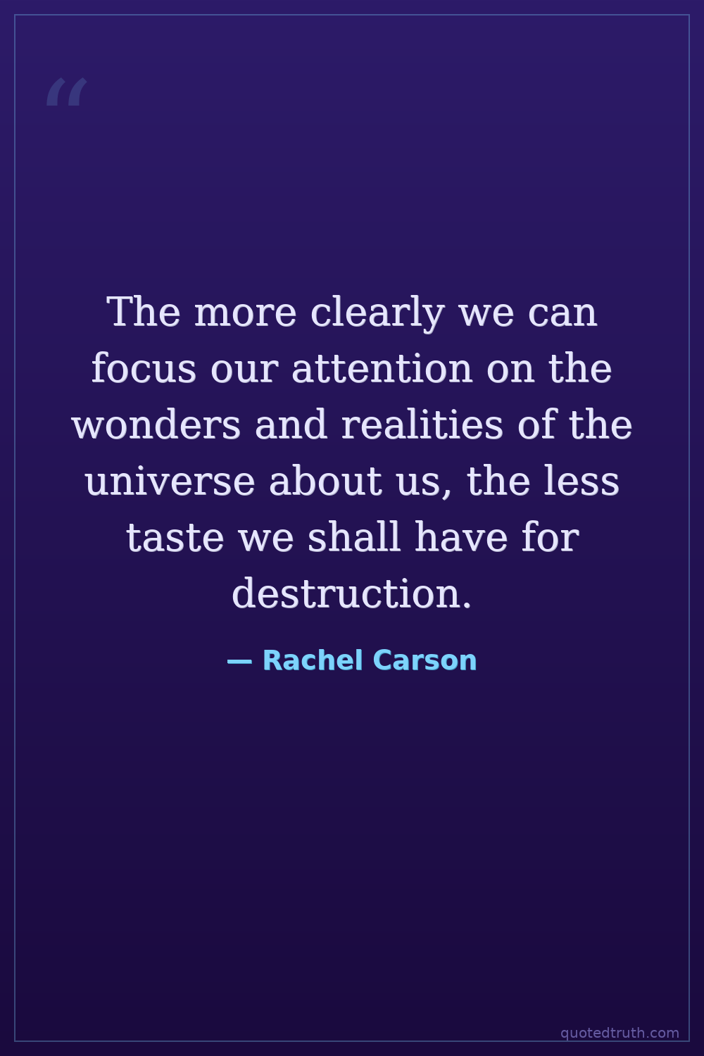 The more clearly we can focus our attention on the wonders and realities of the universe about us, the less taste we shall have for destruction.