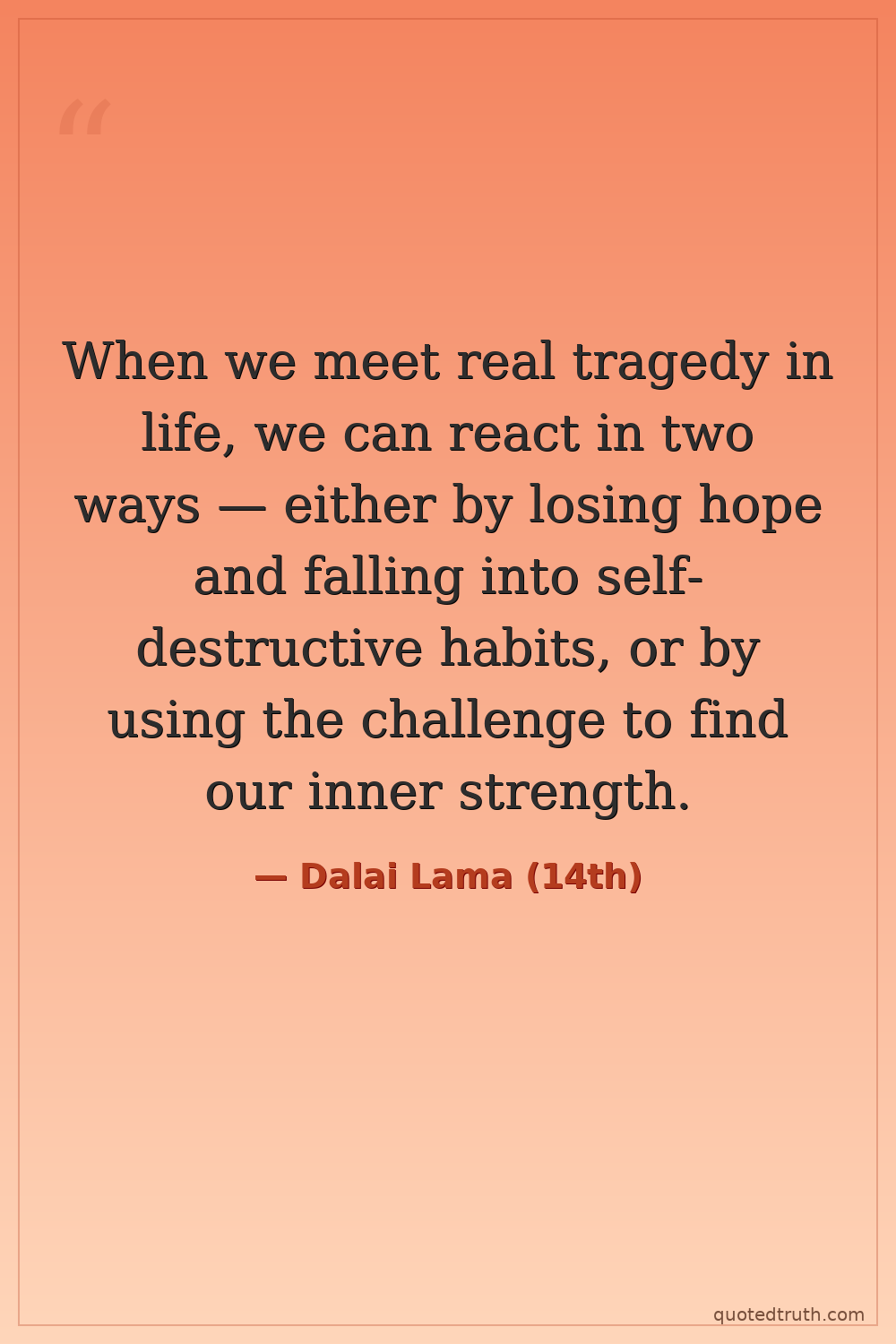 When we meet real tragedy in life, we can react in two ways — either by losing hope and falling into self-destructive habits, or by using the challenge to find our inner strength.