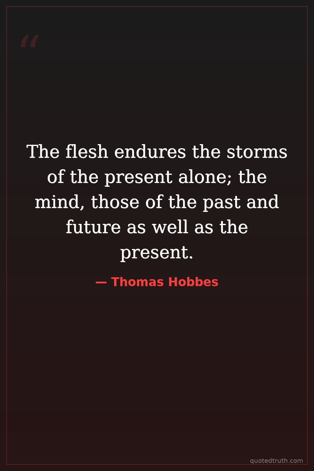 The flesh endures the storms of the present alone; the mind, those of the past and future as well as the present.