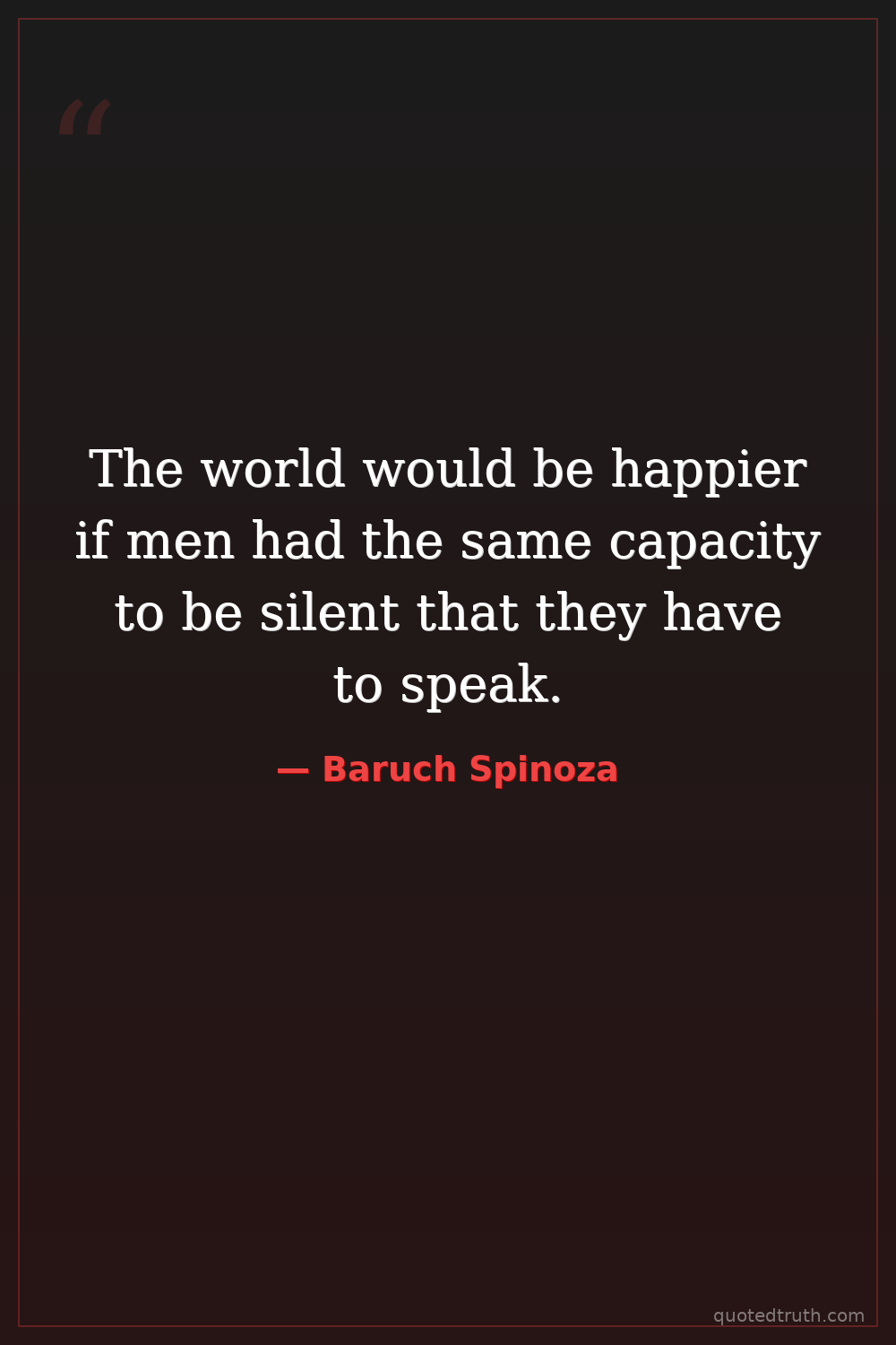 The world would be happier if men had the same capacity to be silent that they have to speak.