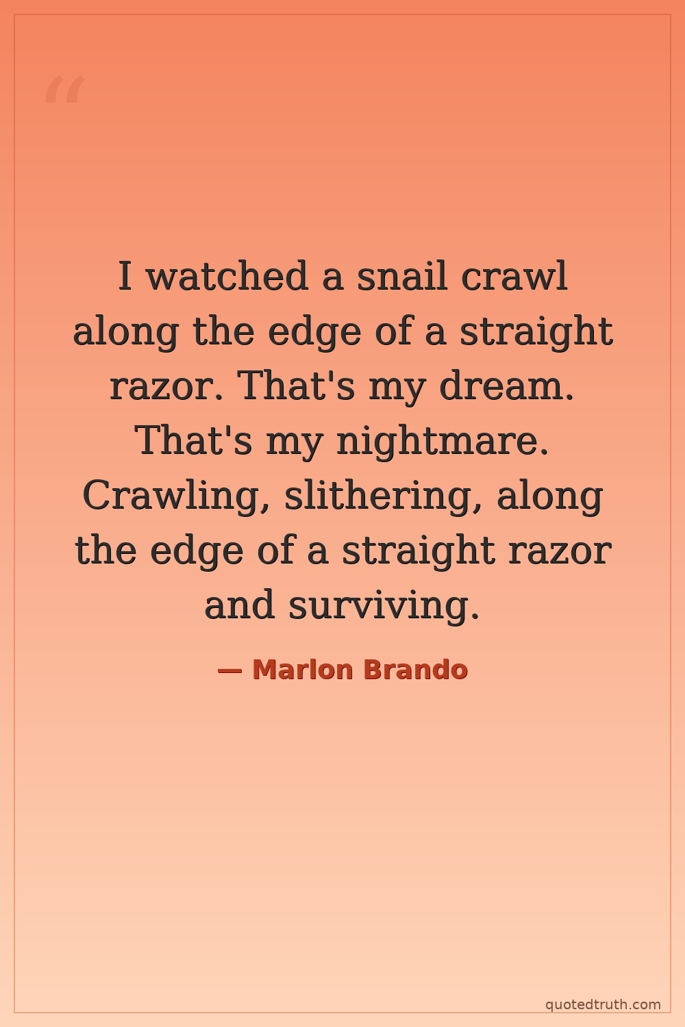 I watched a snail crawl along the edge of a straight razor. That's my dream. That's my nightmare. Crawling, slithering, along the edge of a straight razor and surviving.