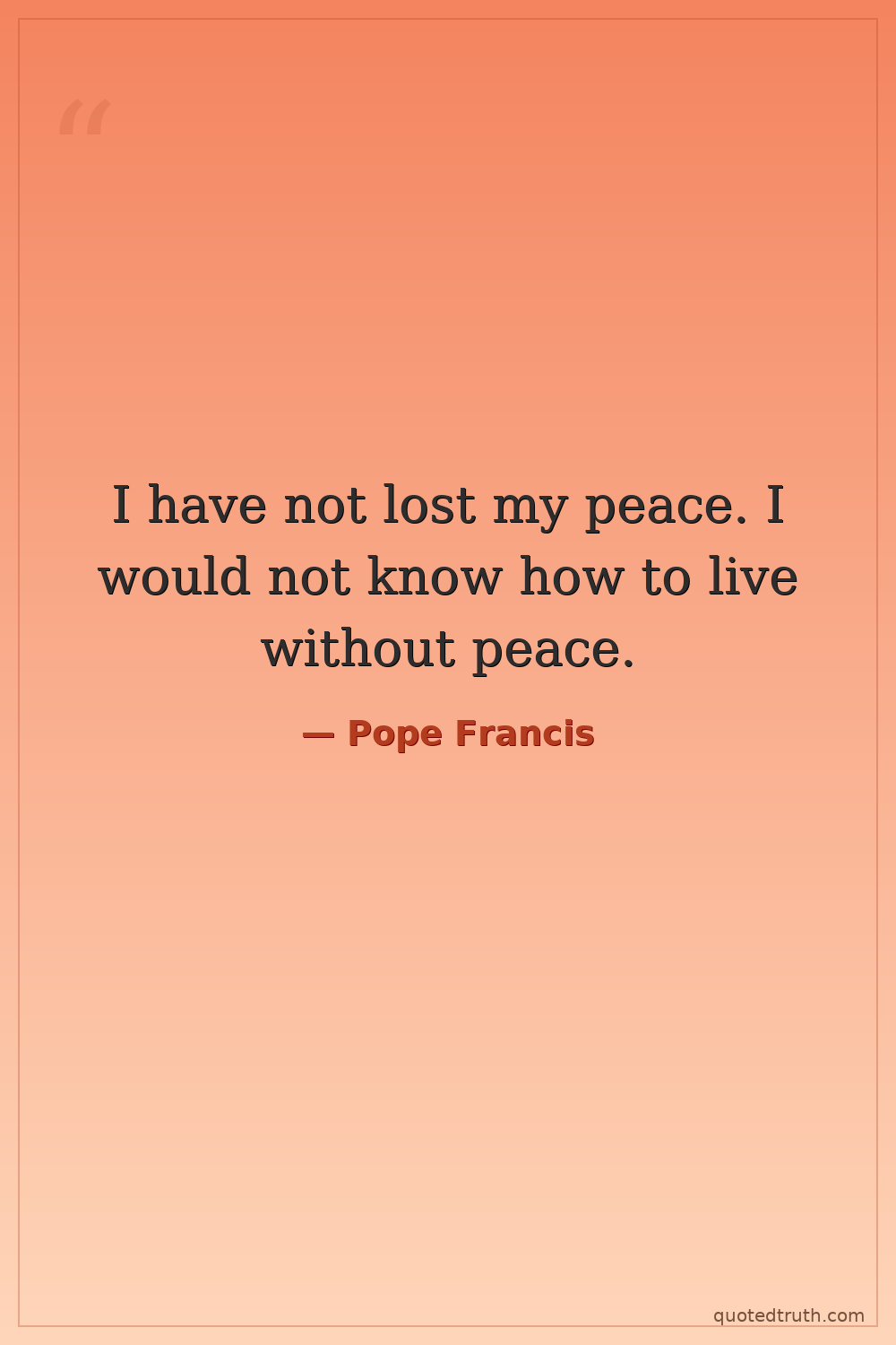 I have not lost my peace. I would not know how to live without peace.