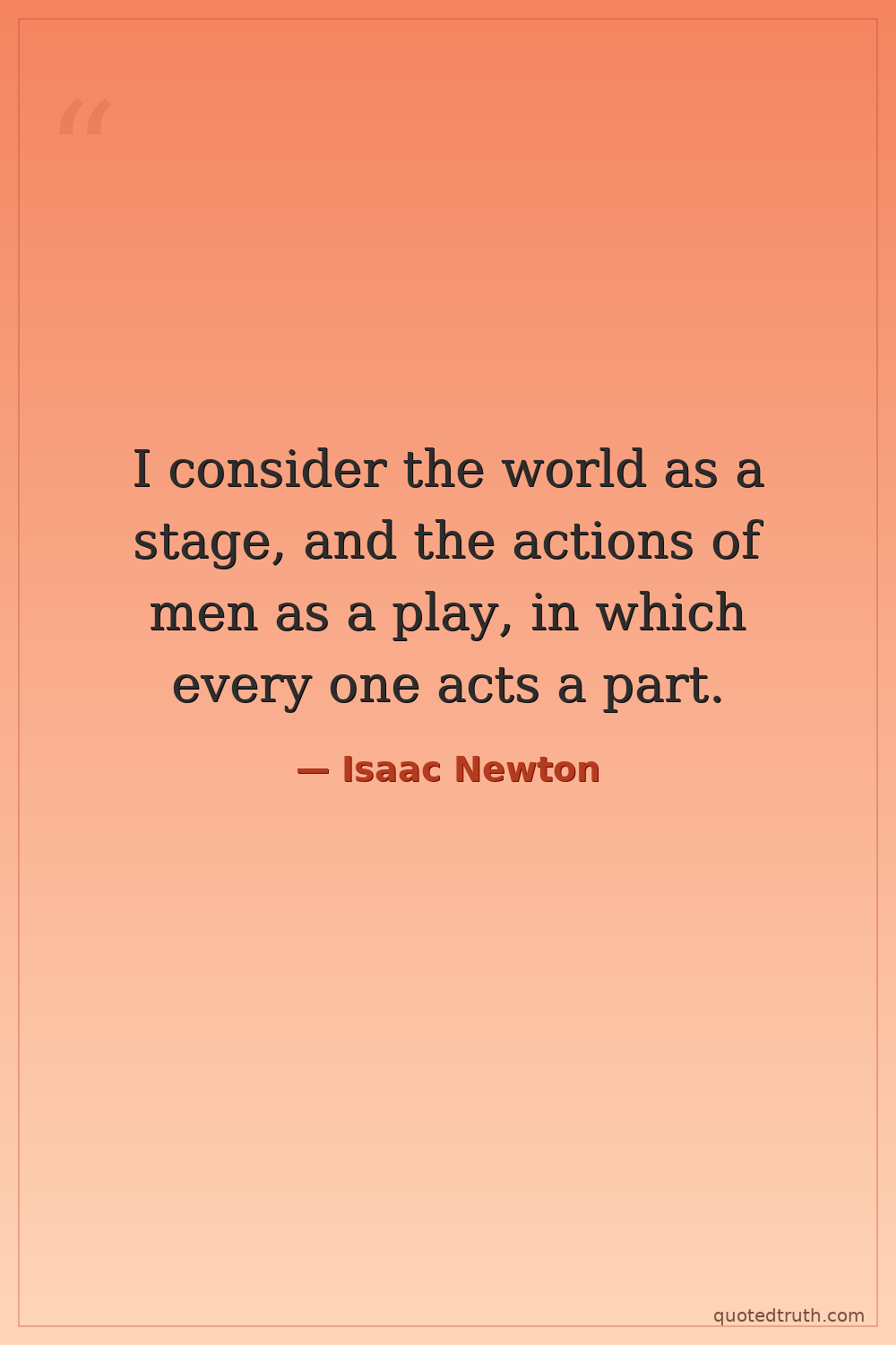 I consider the world as a stage, and the actions of men as a play, in which every one acts a part.