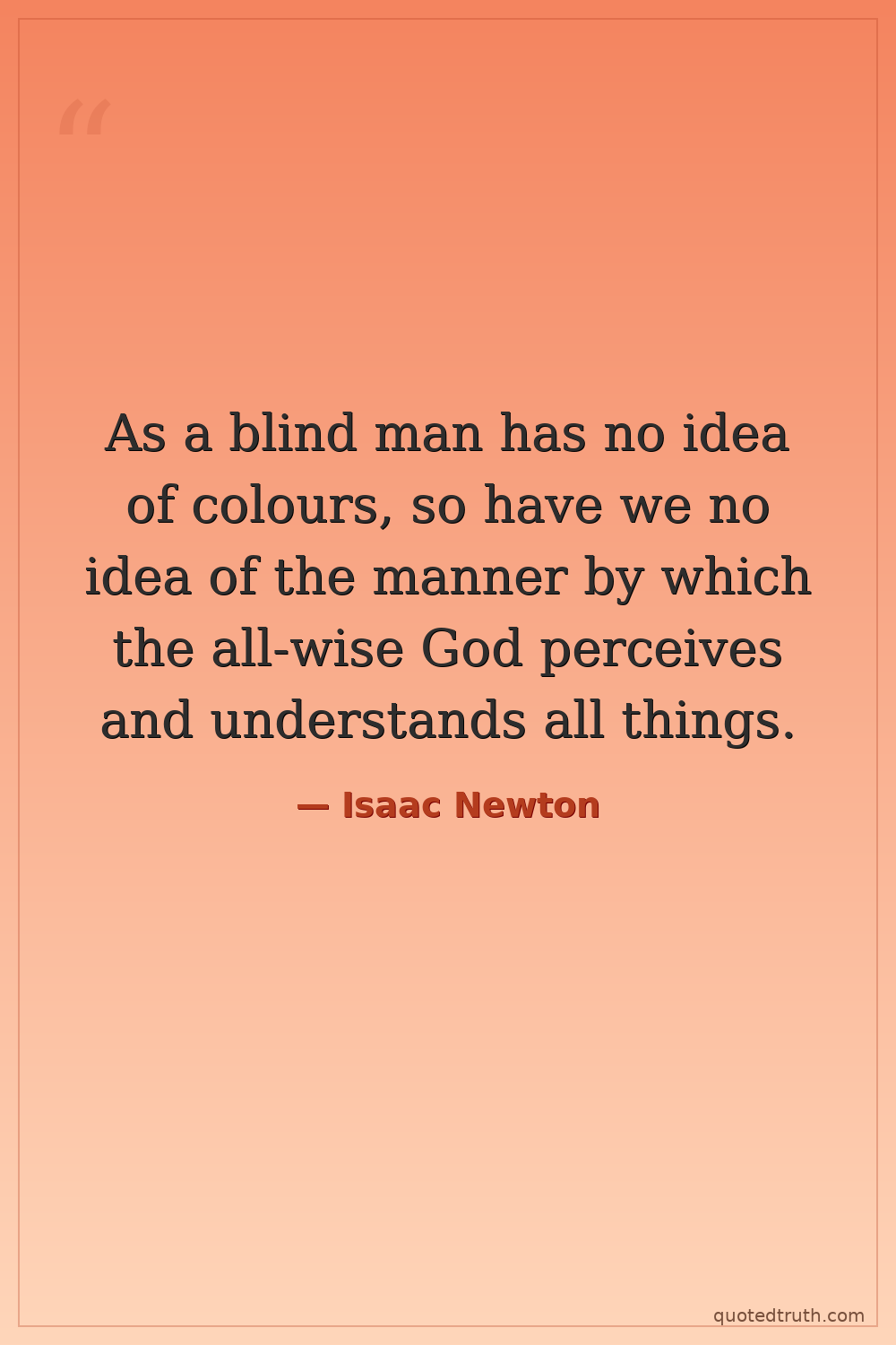 As a blind man has no idea of colours, so have we no idea of the manner by which the all-wise God perceives and understands all things.