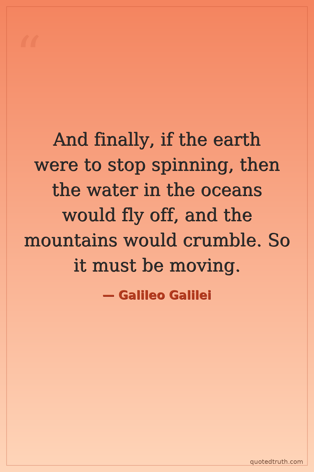 And finally, if the earth were to stop spinning, then the water in the oceans would fly off, and the mountains would crumble. So it must be moving.
