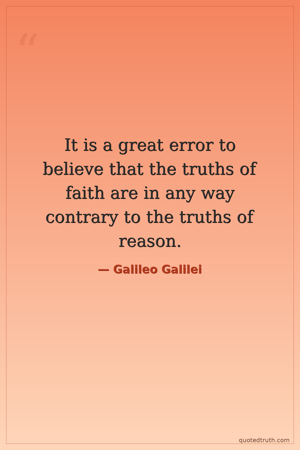 It is a great error to believe that the truths of faith are in any way contrary to the truths of reason.