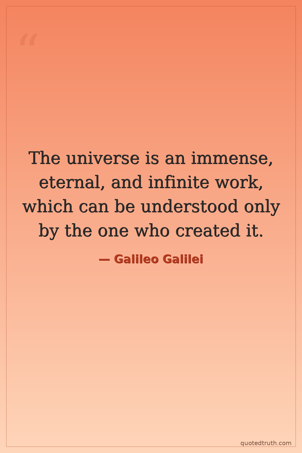 The universe is an immense, eternal, and infinite work, which can be understood only by the one who created it.
