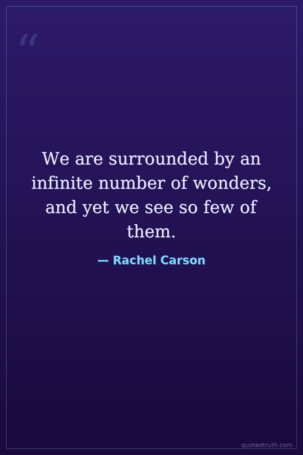 We are surrounded by an infinite number of wonders, and yet we see so few of them.
