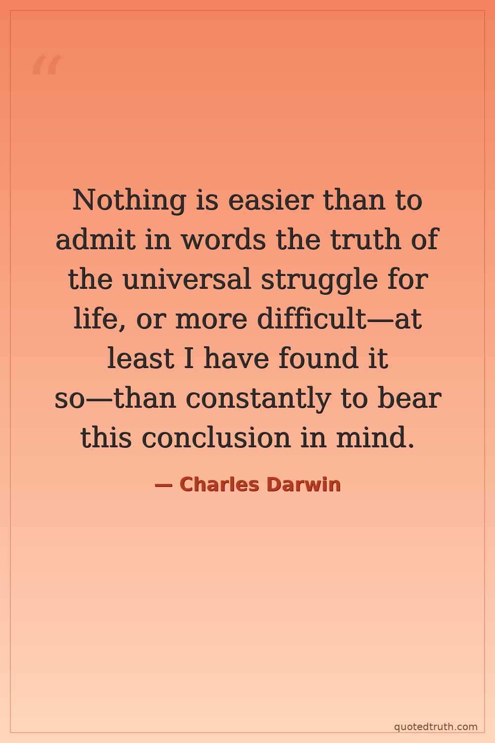 Nothing is easier than to admit in words the truth of the universal struggle for life, or more difficult—at least I have found it so—than constantly to bear this conclusion in mind.