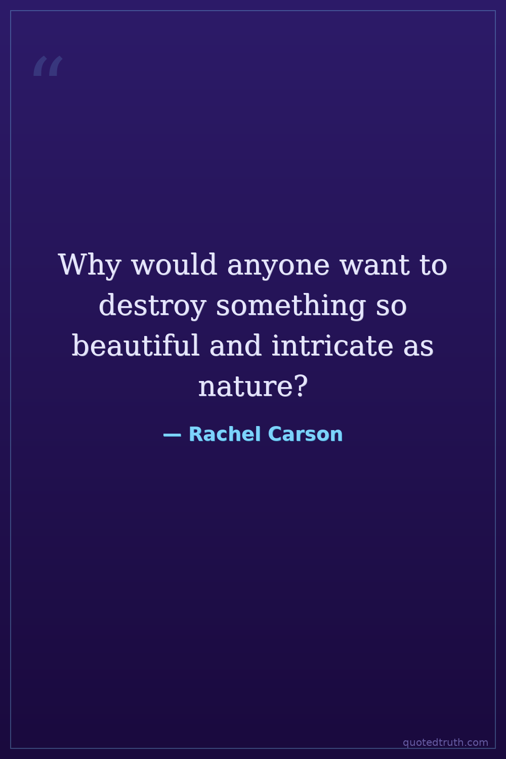 Why would anyone want to destroy something so beautiful and intricate as nature?