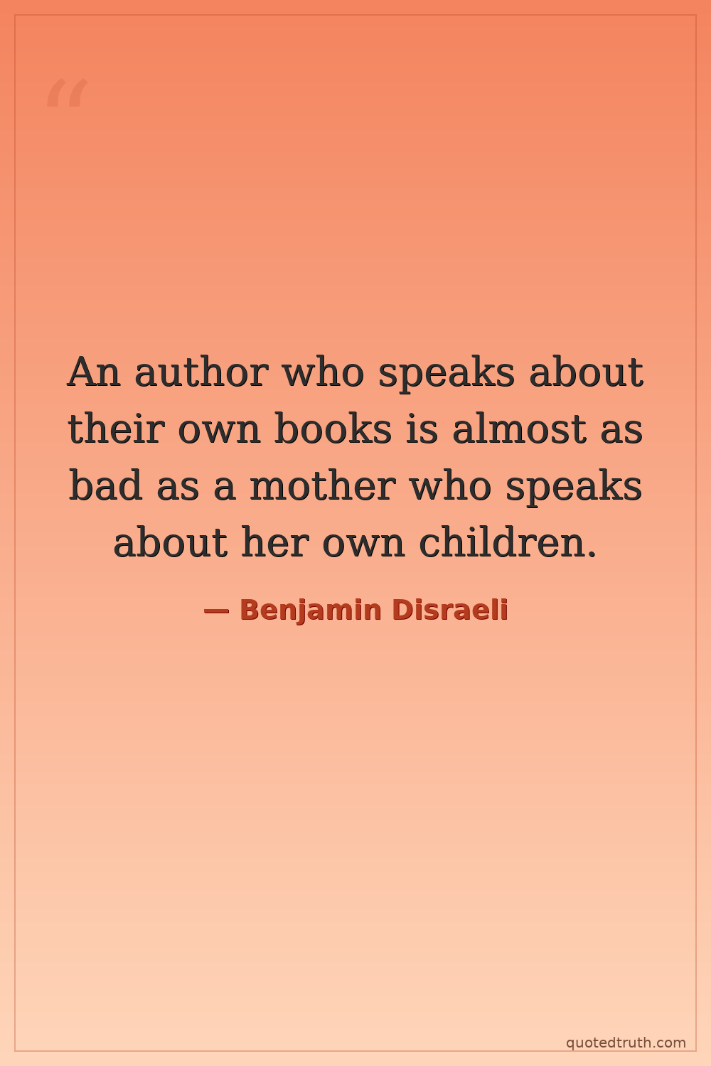 An author who speaks about their own books is almost as bad as a mother who speaks about her own children.