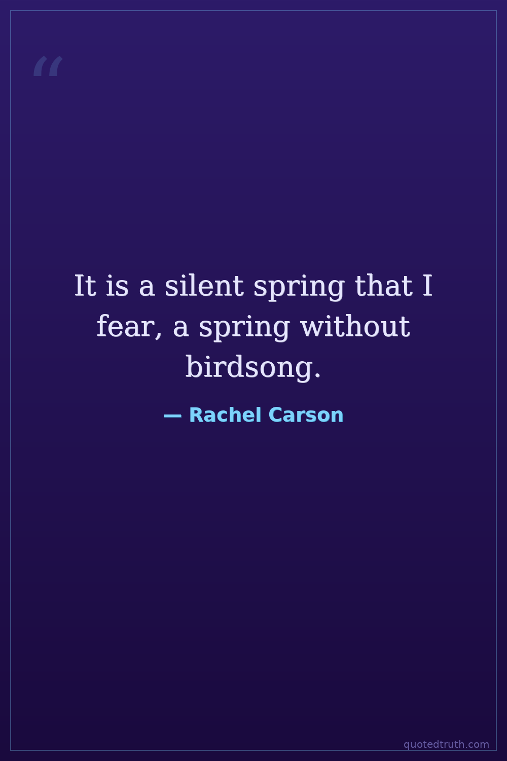 Shocking"The 'control of nature' is a phrase conceived in arrogance, born of the Neanderthal age of biology and philosophy, when it was supposed that nature exists for the convenience of man."