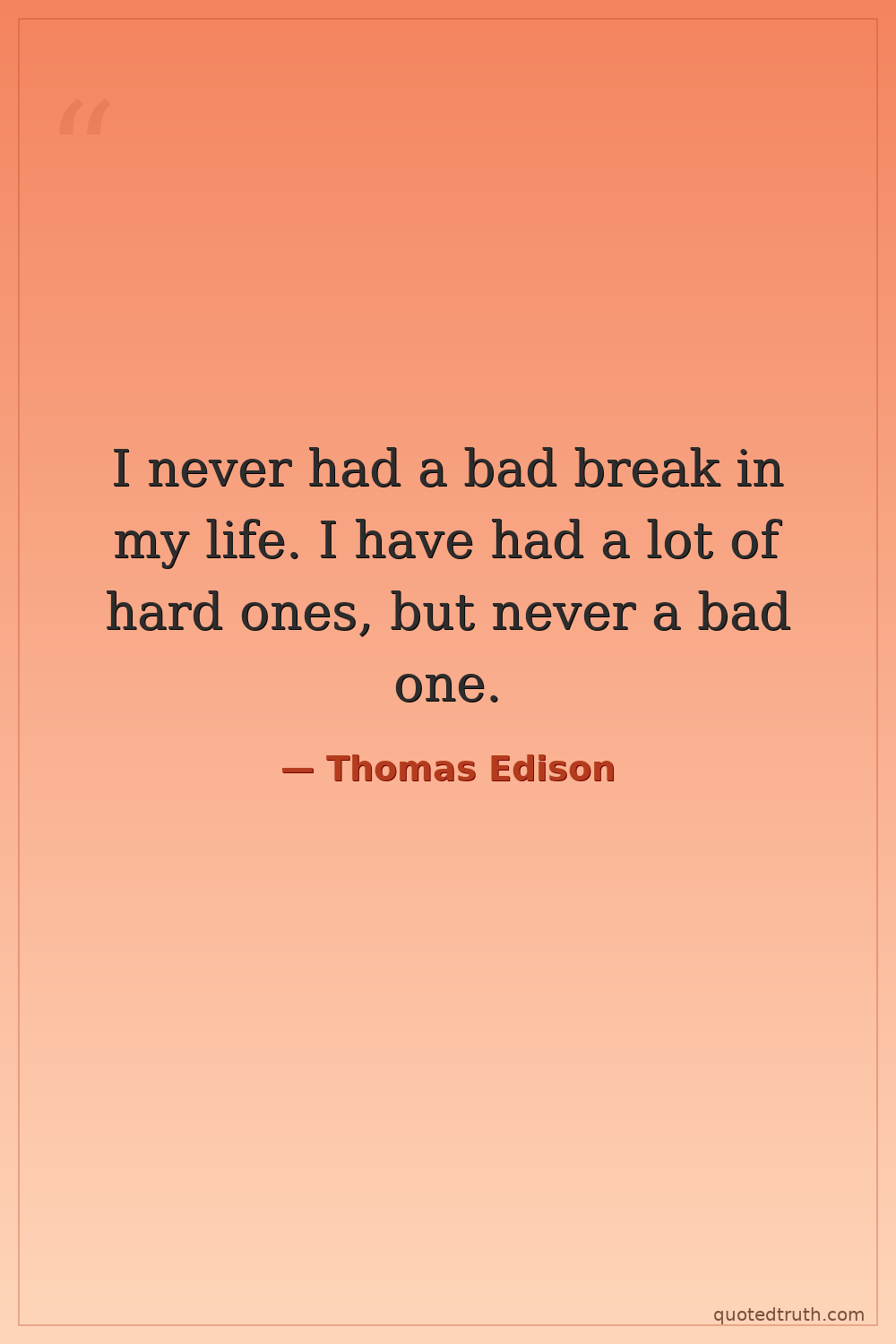 I never had a bad break in my life. I have had a lot of hard ones, but never a bad one.