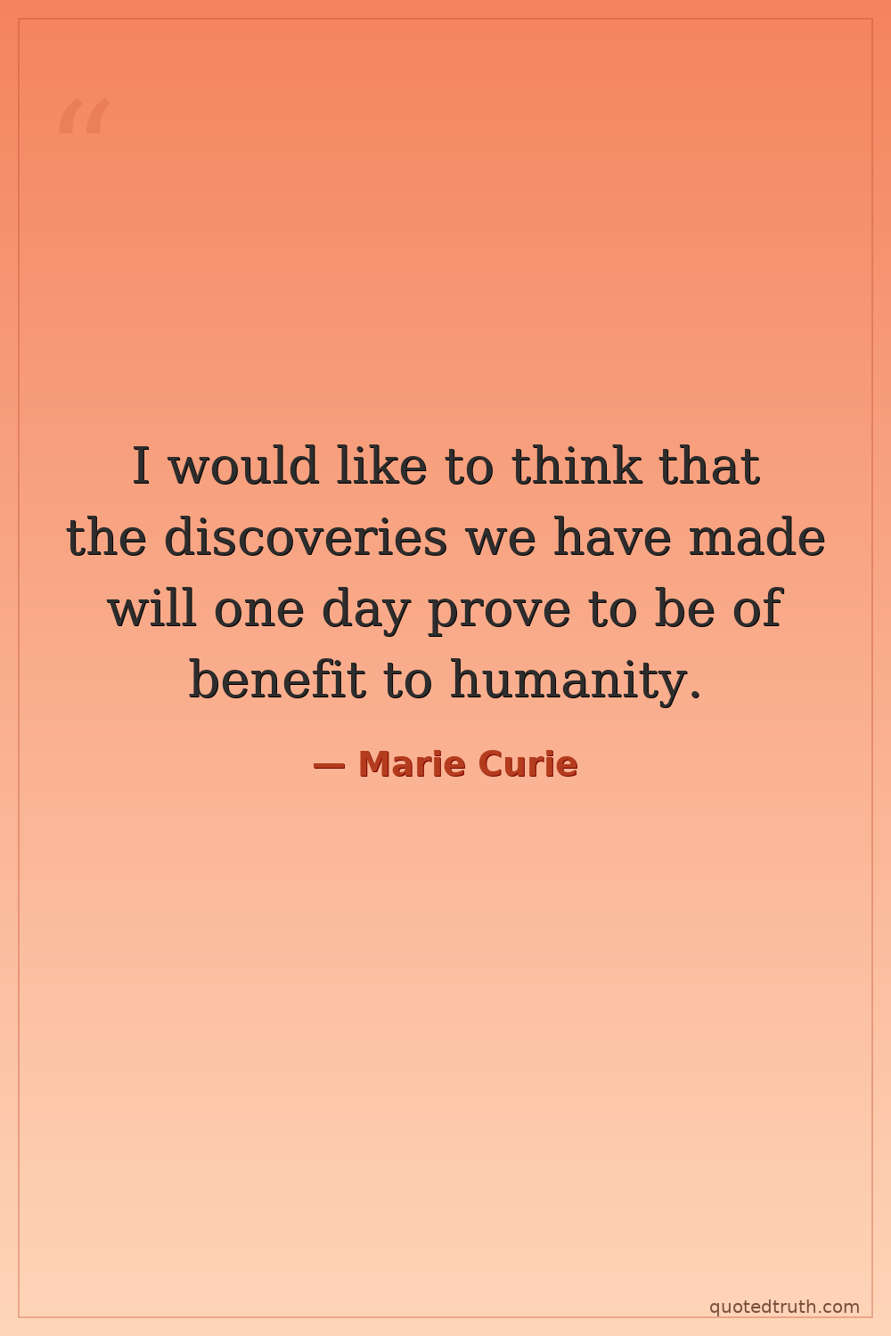 I would like to think that the discoveries we have made will one day prove to be of benefit to humanity.
