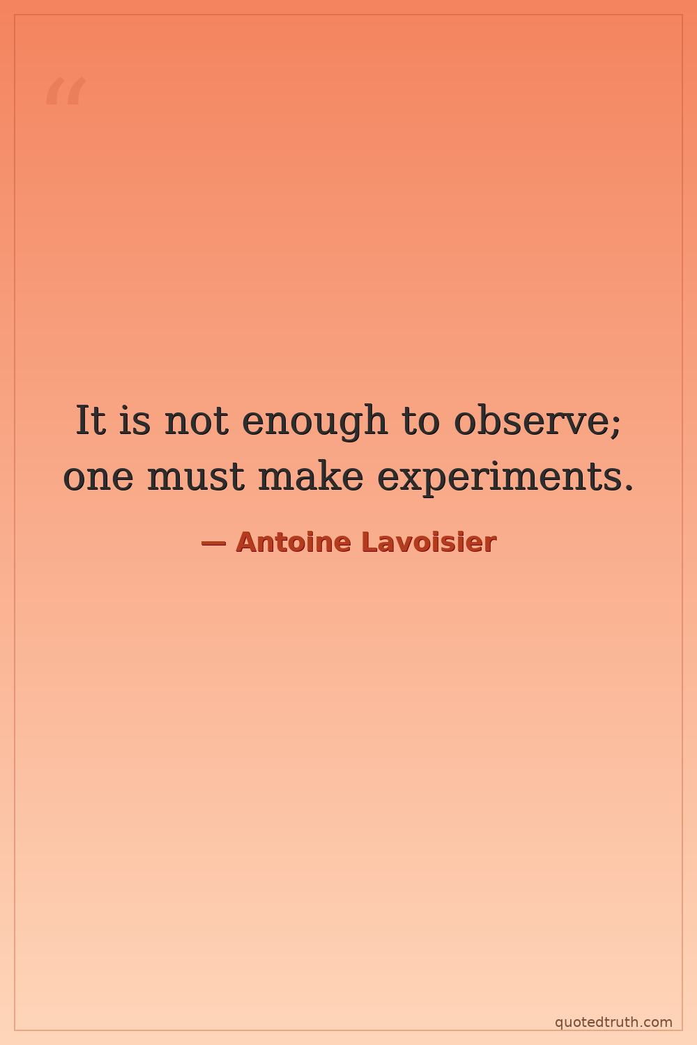 It is not enough to observe; one must make experiments.