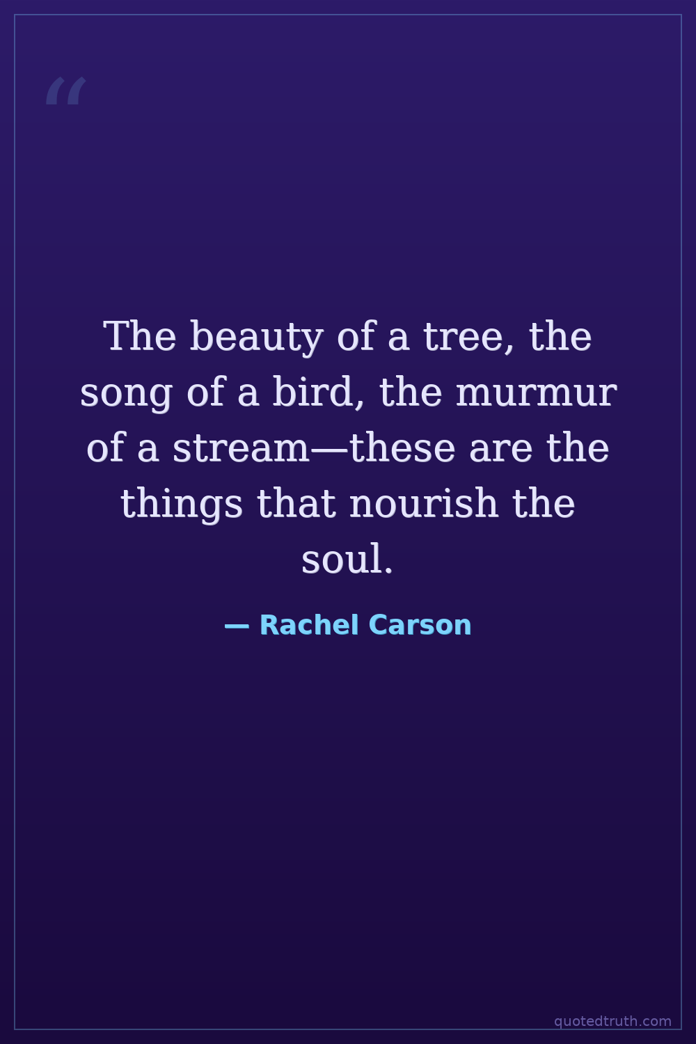 The beauty of a tree, the song of a bird, the murmur of a stream—these are the things that nourish the soul.
