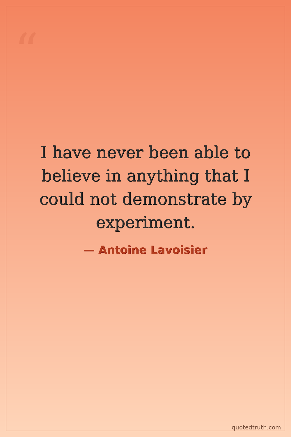 I have never been able to believe in anything that I could not demonstrate by experiment.