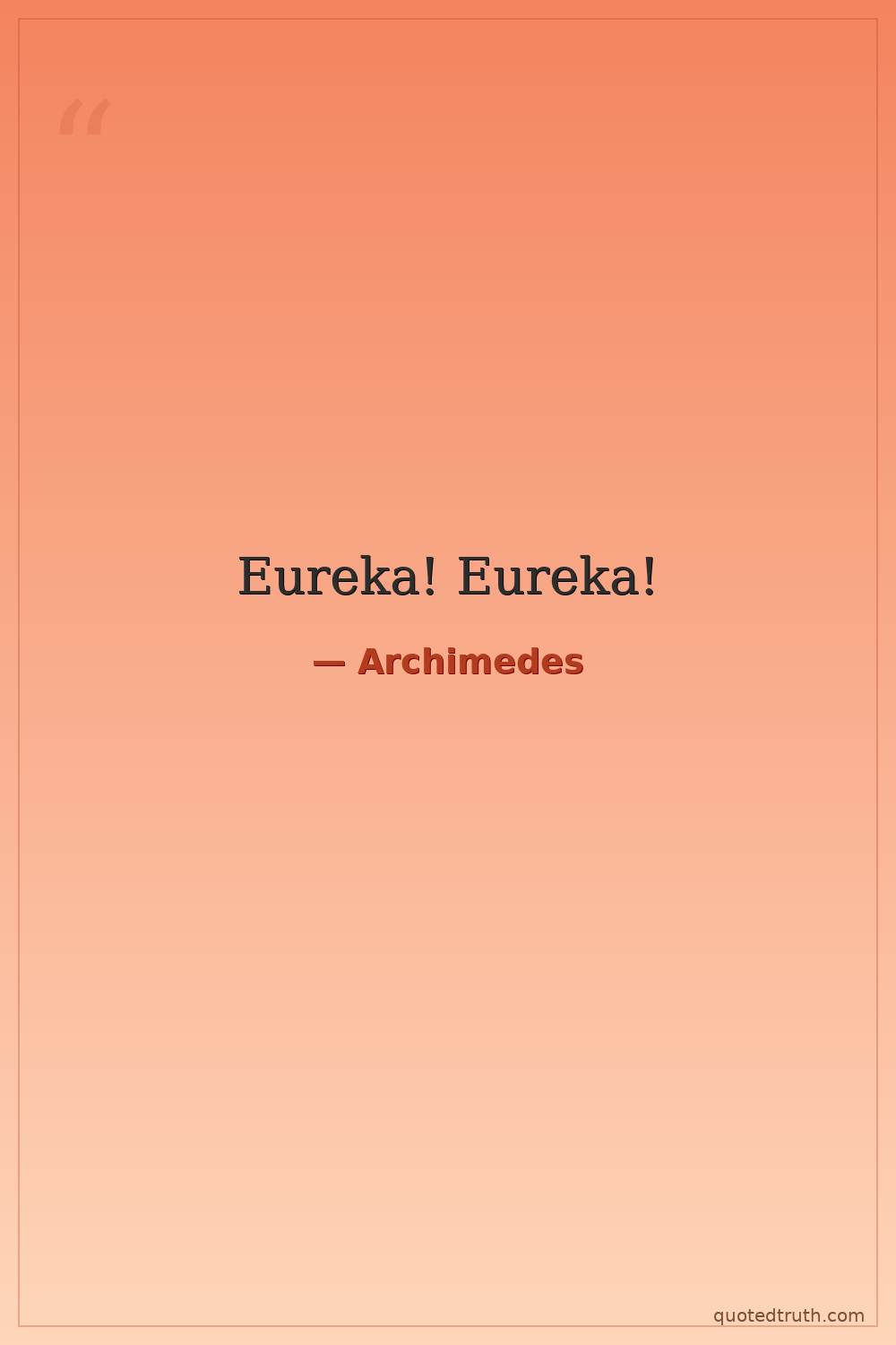 Famously exclaimed upon discovering the principle of buoyancy while bathing. As told by Vitruvius.