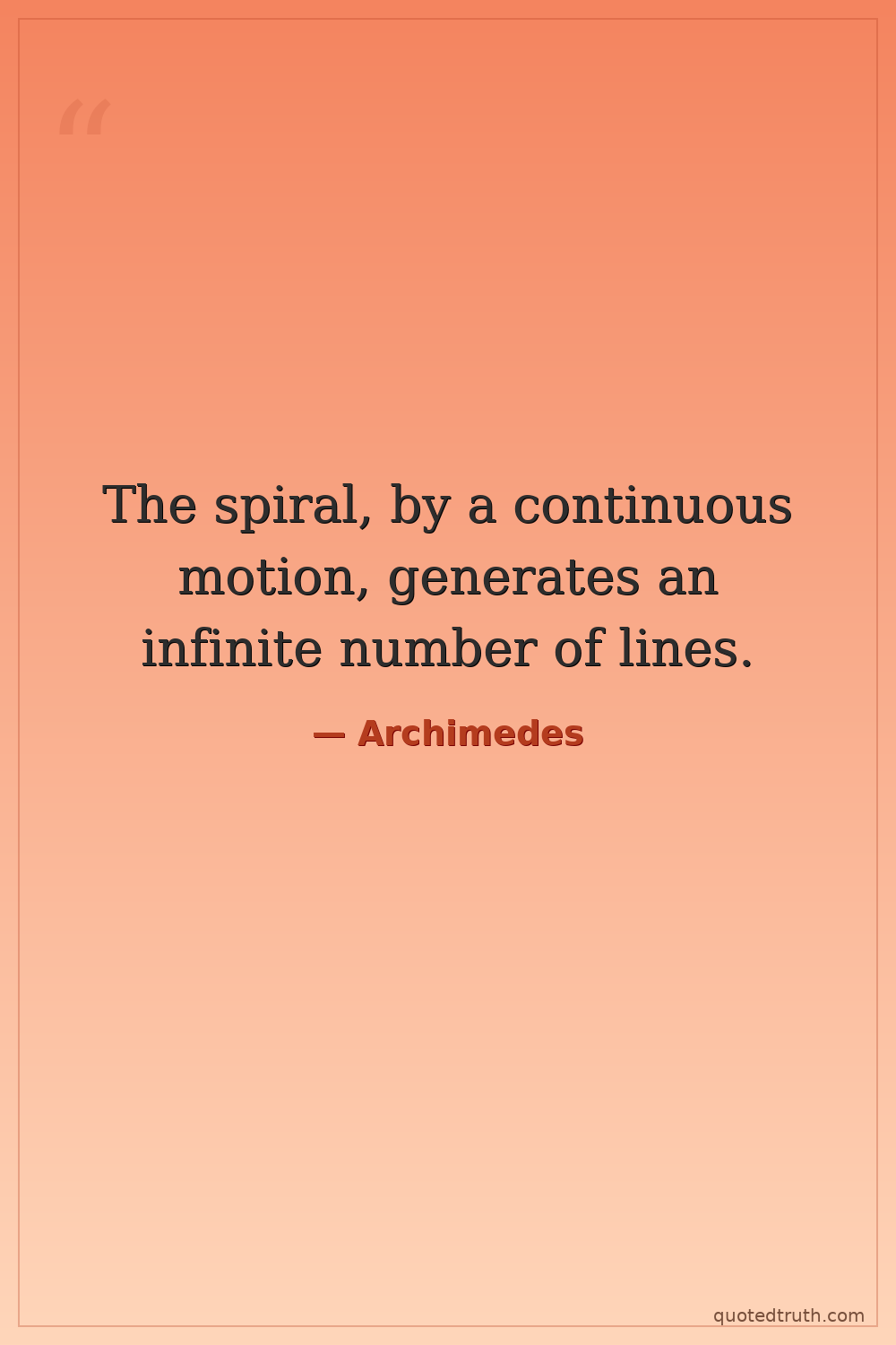 The spiral, by a continuous motion, generates an infinite number of lines.