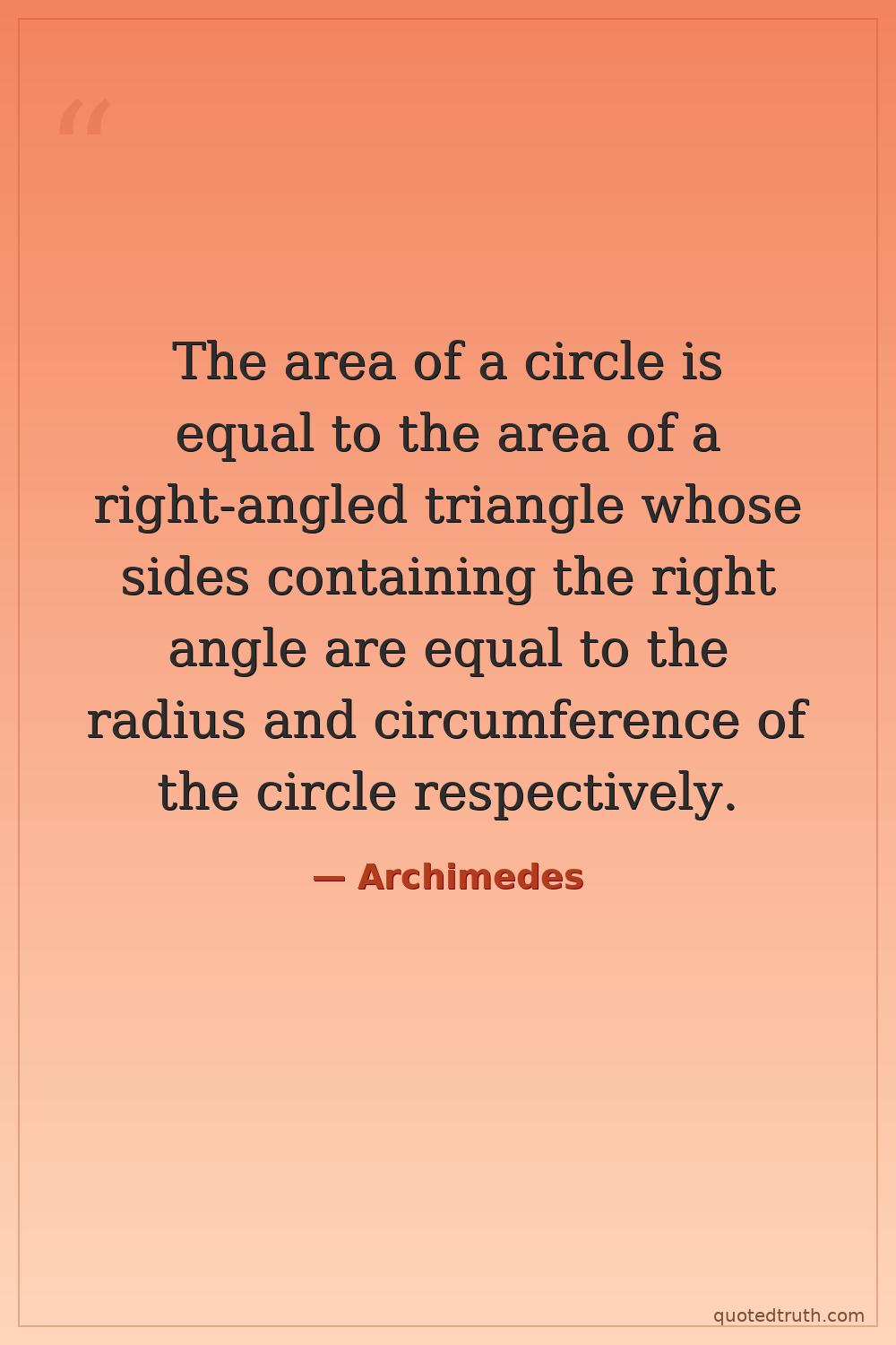 The area of a circle is equal to the area of a right-angled triangle whose sides containing the right angle are equal to the radius and circumference of the circle respectively.