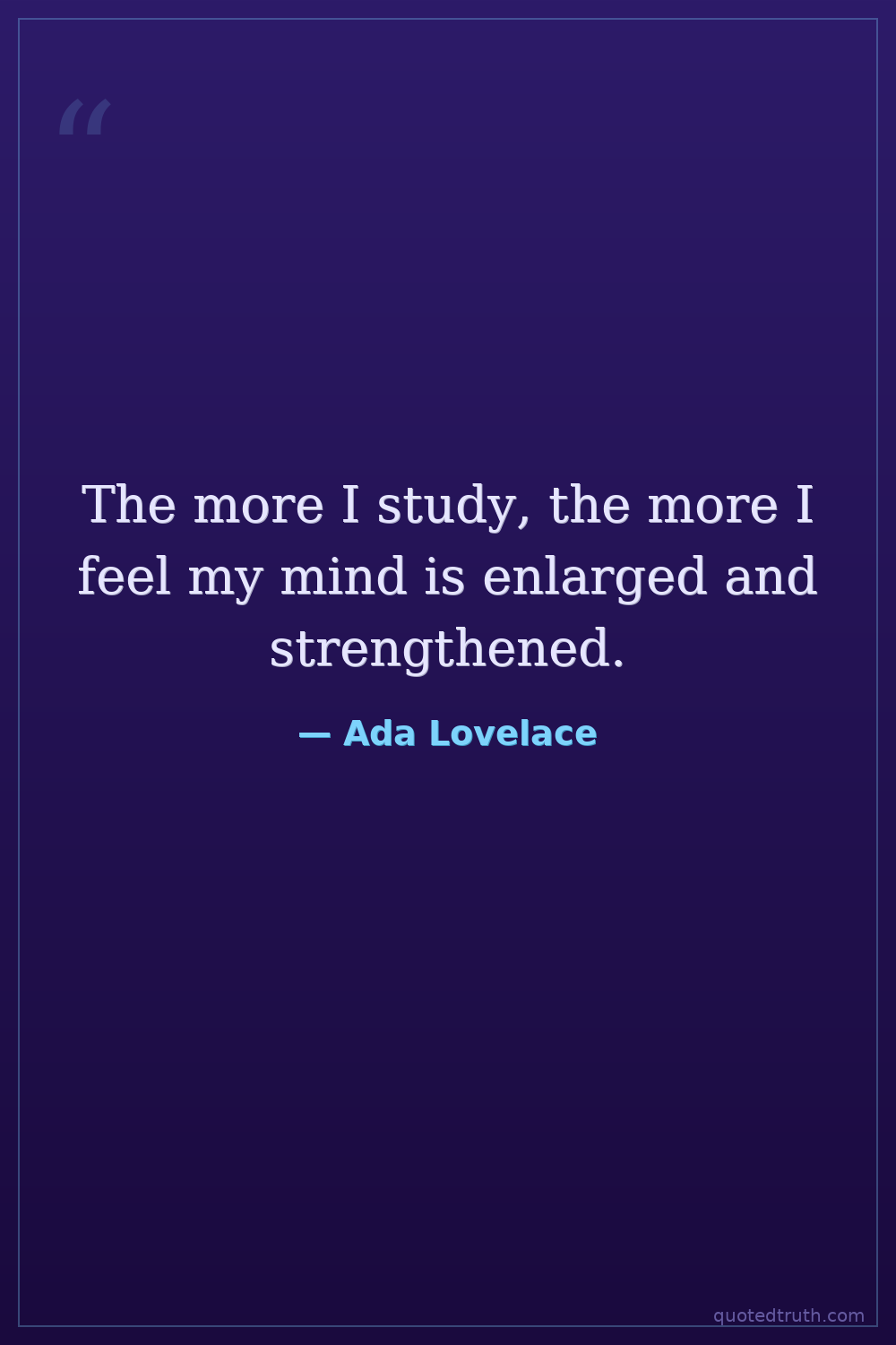 The more I study, the more I feel my mind is enlarged and strengthened.