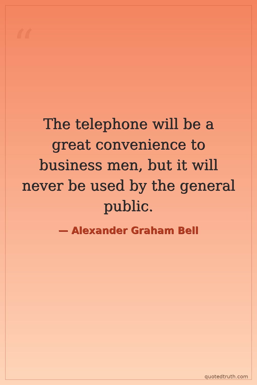 The telephone will be a great convenience to business men, but it will never be used by the general public.